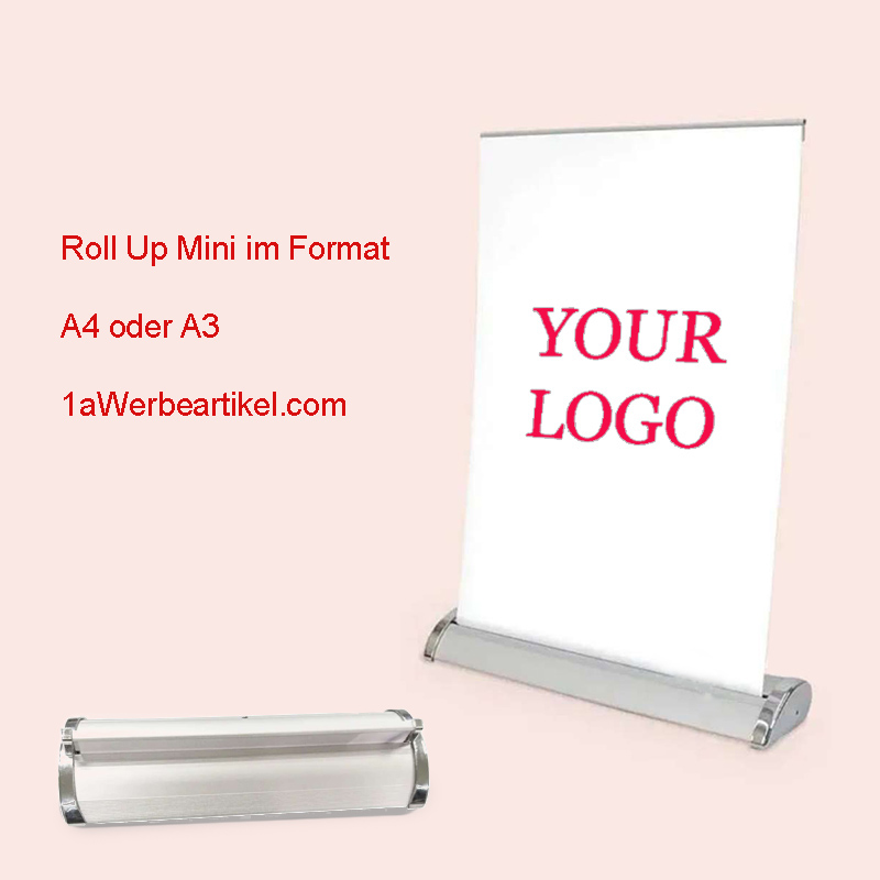 Mini Roll-Up in A4 or A3 Format | Table Displays Printing | Custom Desk Displays with Logo | Presentation Stands | Counter & Desk Displays
